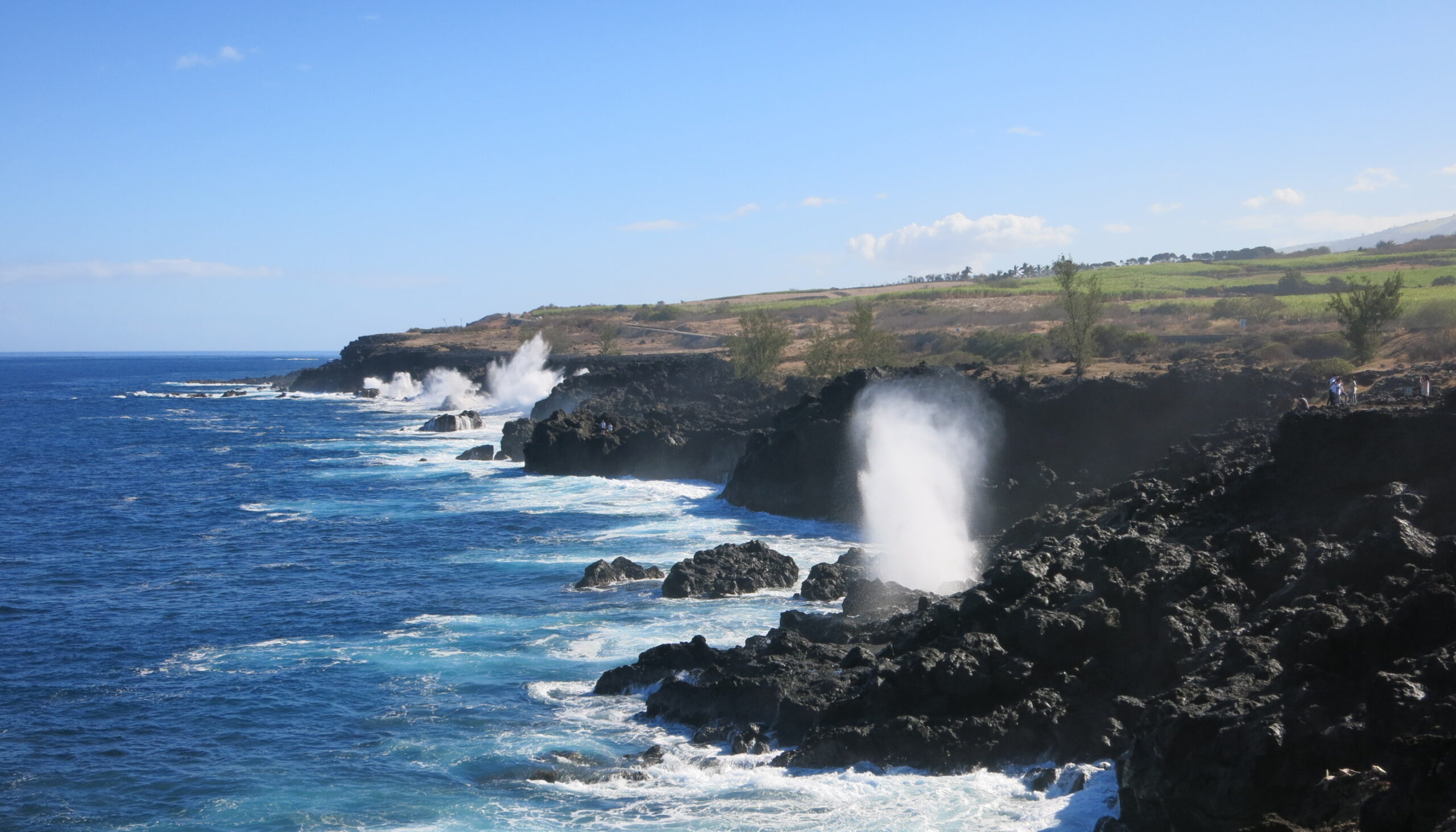 Le trou du Souffleur se trouve au bord de la route, à quelques kilomètres au sud de Saint-Leu. Cette curiosité naturelle projette un jet d’embruns spectaculaire lorsque la houle est forte. Le phénomène est provoqué par une grotte sous-marine où l’eau s’engouffre avant d’être expulsée sous pression.